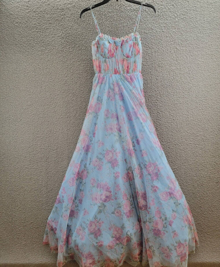 Capture the essence of elegance with the City Studio Floral-Print Bustier Gown. Designed for those who appreciate a touch of sophistication, this dress is a perfect choice for formal events, cocktail parties, or evening celebrations. The sweetheart neckline and sleeveless cut create a flattering silhouette, while the sky and rose floral pattern adds a soft, dreamy charm.