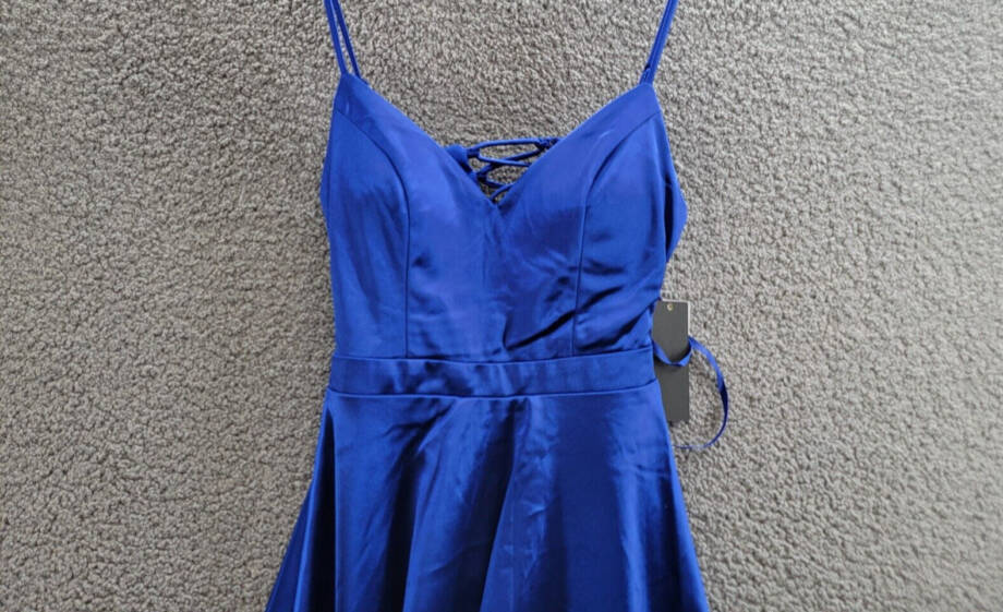 City Studio Satin Fit & Flare Dress Juniors’ 5 Cobalt Blue V-Neck Zip Lace Back