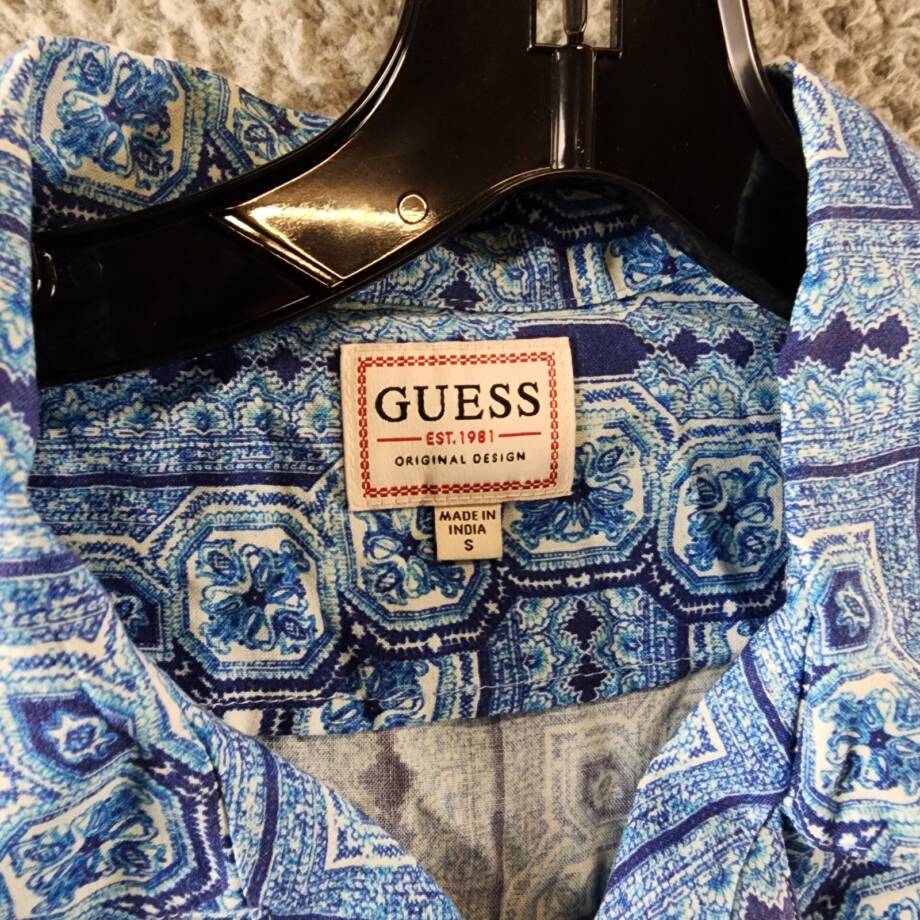 GUESS Eco Rayon Tile Shirt Men’s S Medallion Tile Short Sleeve Button Closure