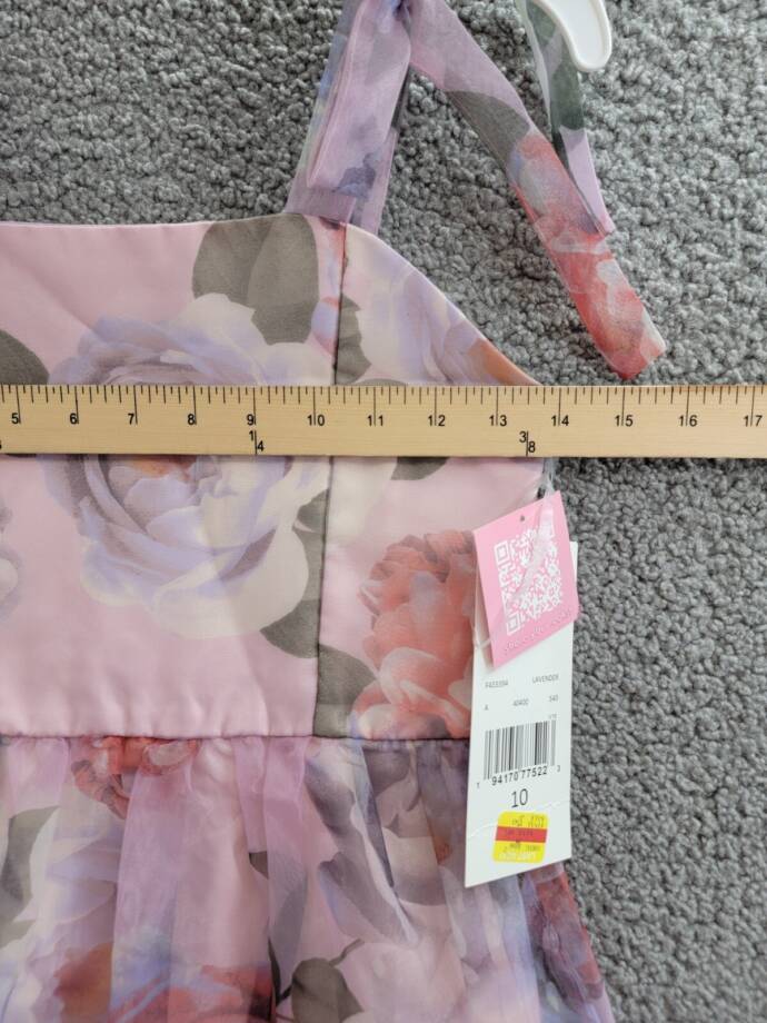 Rare Editions Floral-Print Organza Maxi Dress Big Girls 10 Lavender Zip Closure