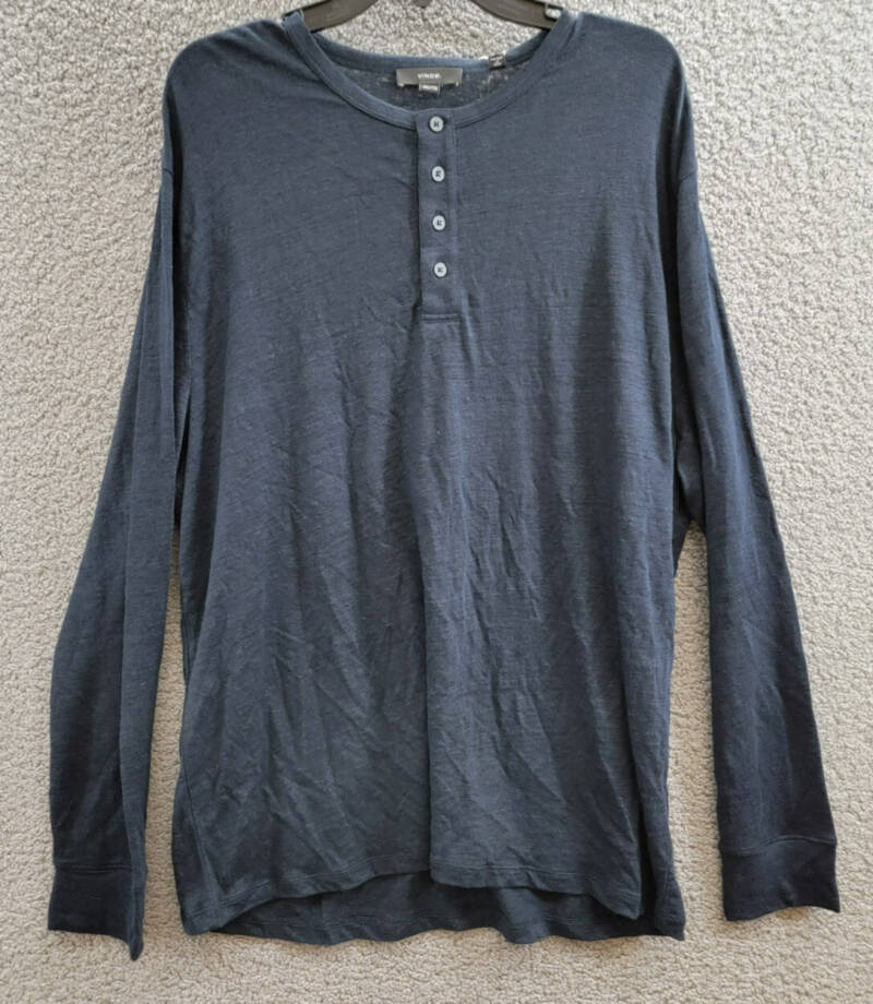 Be the first to review “Vince Long Sleeve Linen Henley Shirt Men’s XXL Coastal Button Placket Pullover”