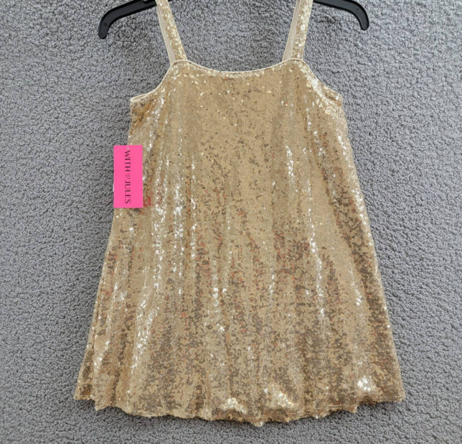 With Jules Sleeveless Sequin Swing Dress Big Girls M Gold Straight Neck Pullover
